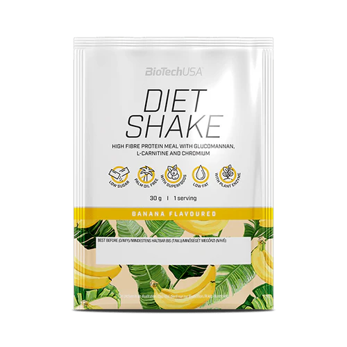 Το Biotech USA Diet Shake είναι ένα ολοκληρωμένο ρόφημα αντικατάστασης γεύματος, ειδικά σχεδιασμένο για έλεγχο βάρους, σωστή διατροφή και υποστήριξη ενός ενεργού τρόπου ζωής. Συνδυάζει πρωτεΐνη υψηλής ποιότητας, φυτικές ίνες, βιταμίνες και μέταλλα, προσφέροντας κορεσμό και ενέργεια με υπέροχη γεύση μπανάνας.