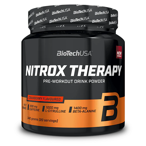 Απόλαυσε μέγιστη ενέργεια, συγκέντρωση και μυϊκή αντλία με το Nitrox Therapy της BioTech USA! Αυτό το συμπλήρωμα σε σκόνη με γεύση cranberry συνδυάζει νιτρικό οξείδιο, αμινοξέα και ενεργειακά συστατικά για να βελτιώσει την απόδοση, την αντοχή και τη συγκέντρωση κατά την προπόνηση.