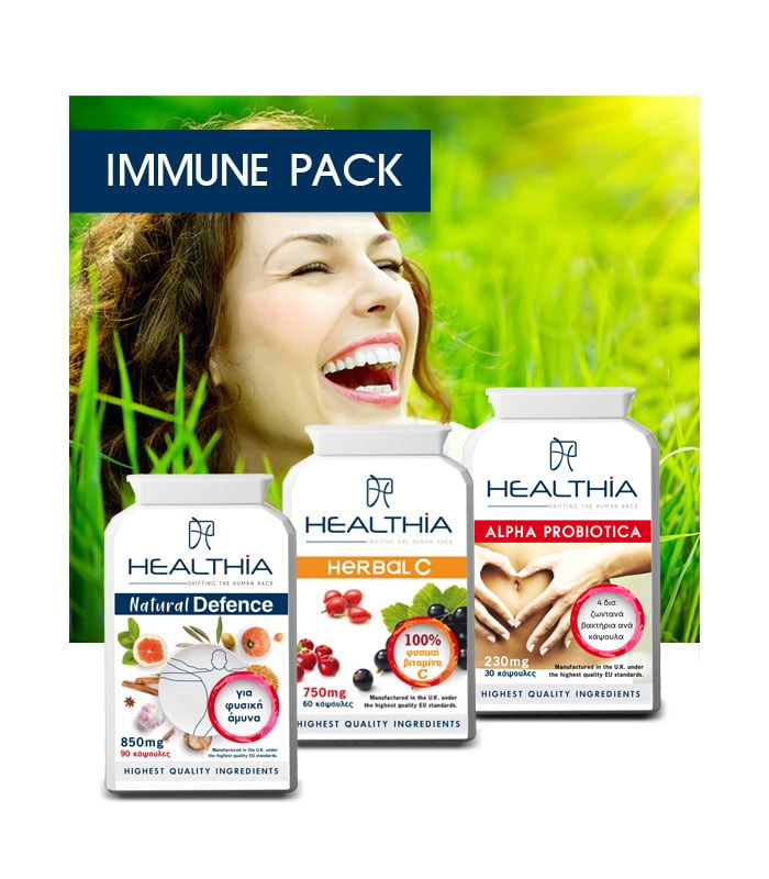 Το πακέτο IMMUNE PACK της Healthia περιλαμβάνει 3 ισχυρά συμπληρώματα διατροφής, και θωρακίζει άμεσα και ενισχύει το ανοσοποιητικό σας σύστημα ενάντια: